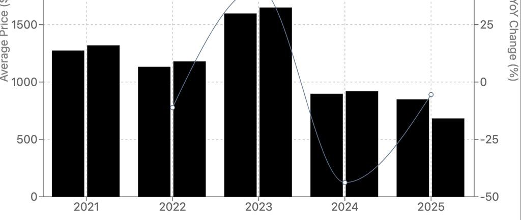 Πτώση τιμών σε σχέση με 2023: -43.82%